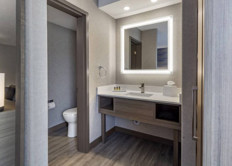 This room features a walk-through washroom, complimentary high-speed internet, a spacious work desk, and a 49″ flat screen HDTV